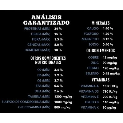 - Con condroitina y glucosamina: favorece la salud articular y el cartílago de las articulaciones
