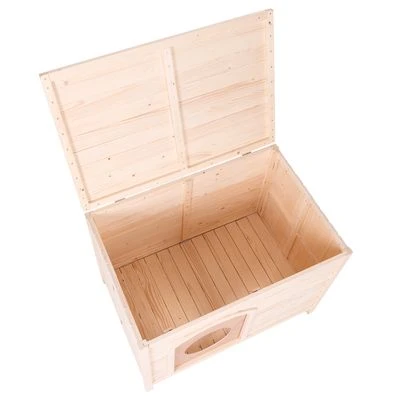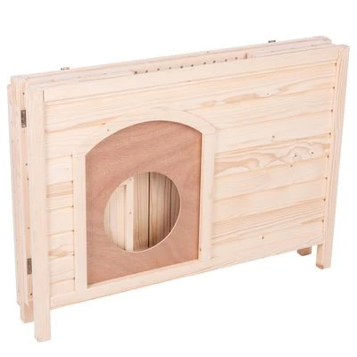 Caseta de madera para perros y gatos. Montaje rápido y se puede plegar. Con puerta para gatos de rápido ensamblaje. Se puede pintar y decorar para utilizar como mueble auxiliar.