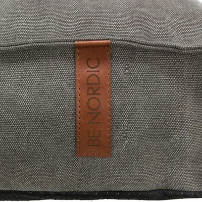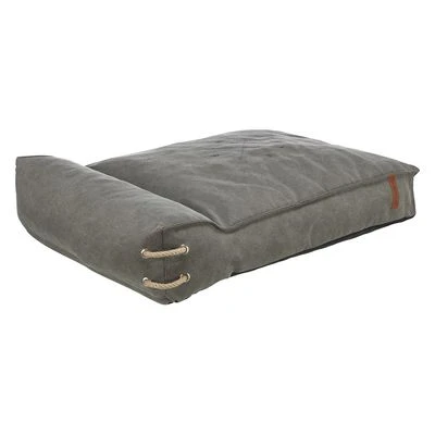 Colchón para perros con funda extraíble y lavable a máquina, con borde elevado en un lateral, bonito diseño naútico y tacto de lona. Con cuerda decorativa. Color gris oscuro.