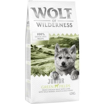 - Junior Green Fields, con cordero: deliciosa comida nutritiva para perros en etapa de crecimiento, basada en la dieta del lobo: libre de cereales y con cordero y gran cantidad de carne fresca de pollo. Favorece el desarrollo sano.