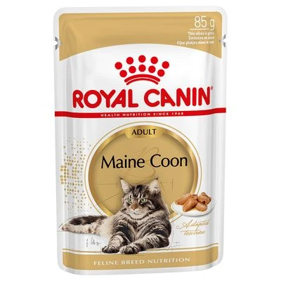 Royal Canin Breed Maine Coon es una comida húmeda indicada para gatos de esta raza, mayores de 12 meses; contiene una combinación exclusiva de crustáceos, ricos en glucosamina, y de aceites que ayuda a proteger las articulaciones y a fortalecer los huesos. El zinc y las vitaminas refuerzan la función de barrera defensiva que tiene la piel y acentúan la belleza natural y el color del pelo.